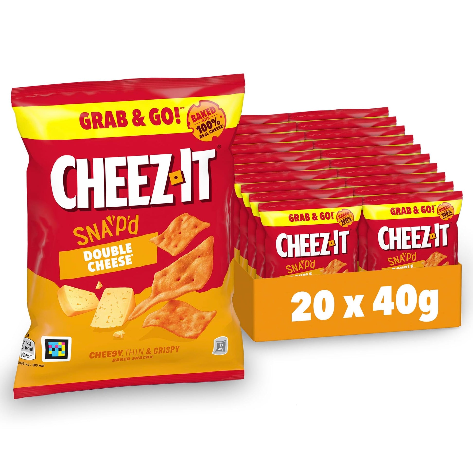 Ultra-thin, oven-baked Cheez-It Snap’d snacks loaded with bold double cheese flavour. These crispy, crunchy bites are light, snappy and seriously moreish, making them perfect for lunchboxes, work snacks or grab-and-go treats.